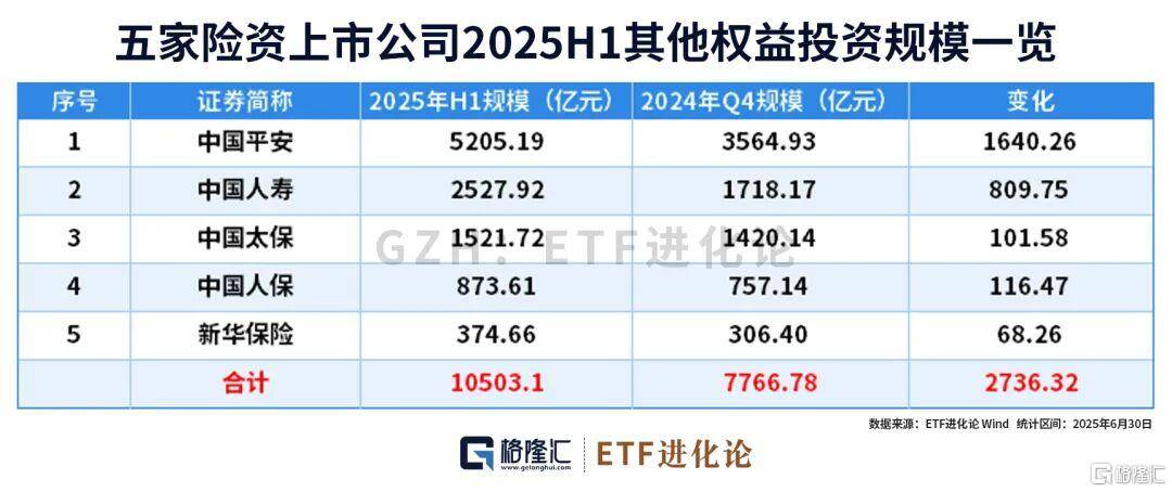 五家险资上市公司2025年H1“其他权益投资”直接突破1万亿规模,相比去年年末增加2736亿元,同样能对得上OCI规模增长的2847亿。