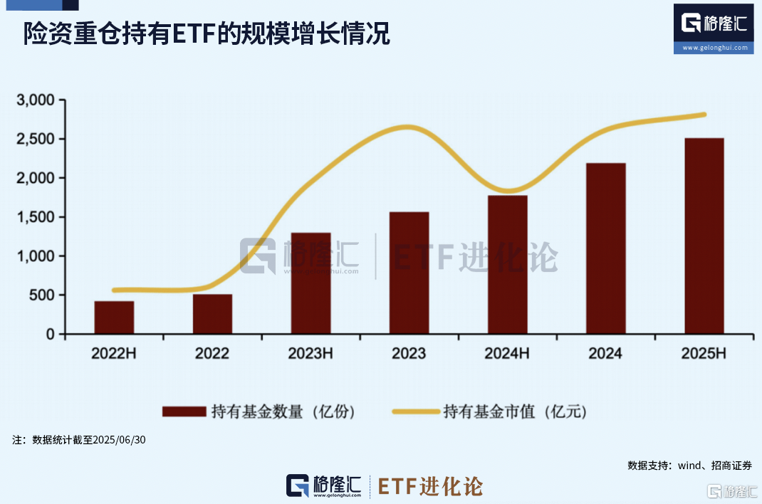 新会计准则后,ETF的较高流动性、较低波动性、较低成本,以及选股优势凸显,因此近年来险资对权益类ETF的配置规模快速增长。