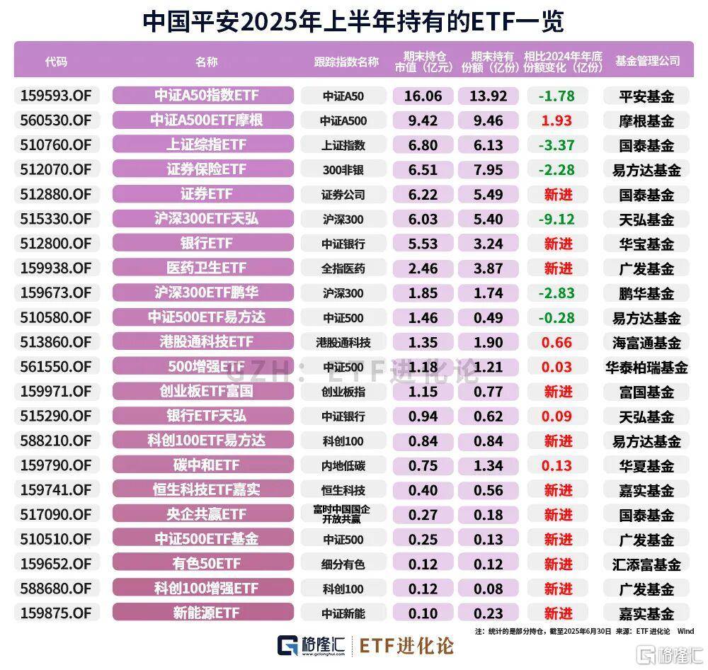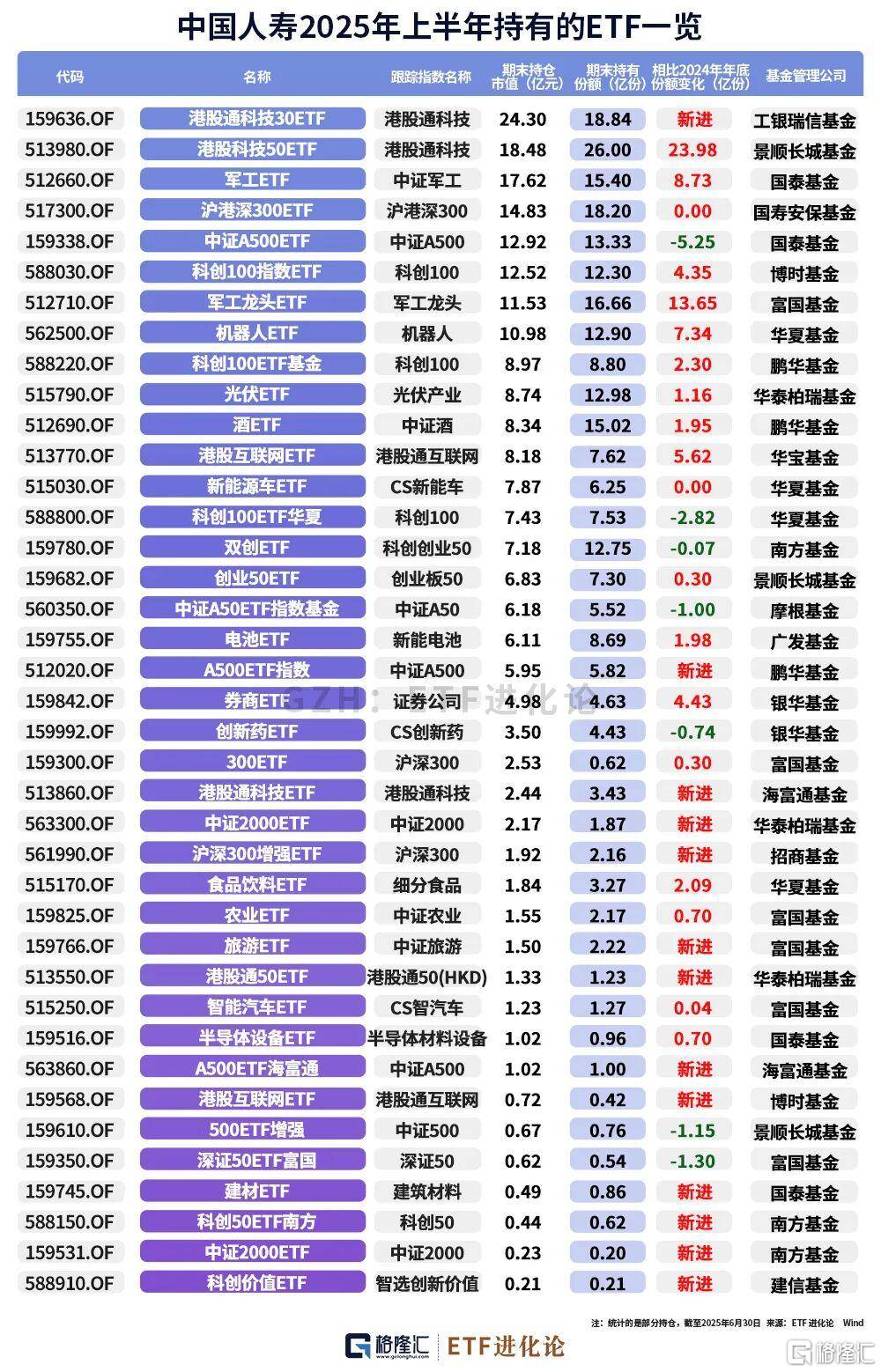 中国人民保险集团股份有限公司上半年出现在8只ETF的前十大持有人中,有7只ETF是今年上半年新进的,分别是银华A50ETF基金、万家A500ETF基金、沪深300ETF工银、华泰柏瑞中证2000ETF等。