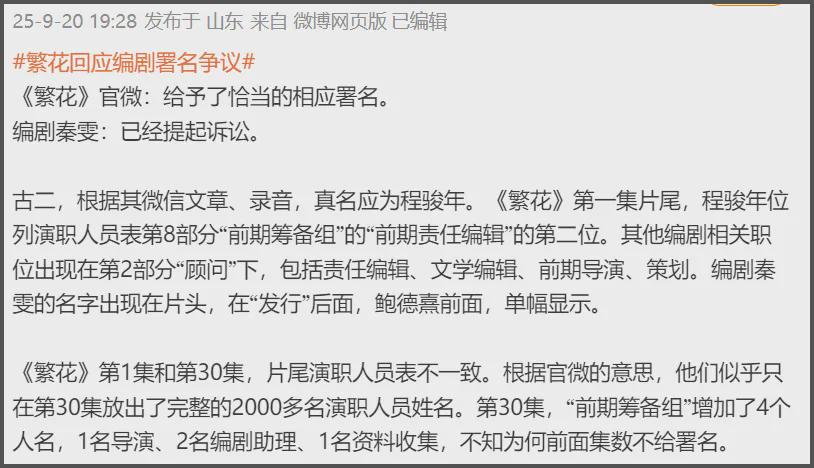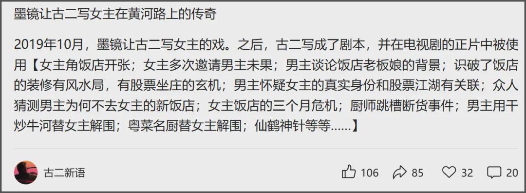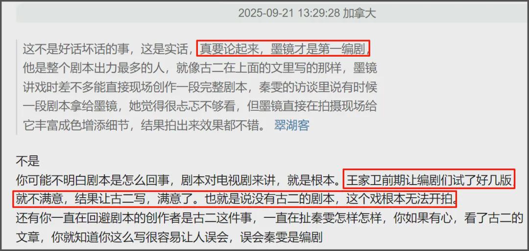 有网友提出质疑,在明显有其他编剧参与创作的情况下,还要把秦雯列为唯一编剧这合适吗?尤其是古二参与创作了不少内容,这不是相当于古二是代写吗?
