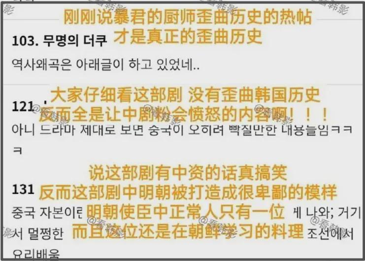 别洗了……韩国网友都看出来《暴君的主厨》扭曲历史、贬低明朝了。