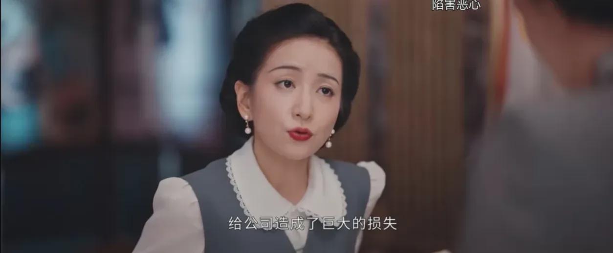 虽说倪香影不讨喜,但演员还是选得很好的,扮演者叫卢佳,很符合这个角色,不管是工作装,还是酒会上的礼服装,都非常惹眼。漂亮的她在人群中被一眼看到,精致的服装造型和红唇卷发,是一位典型的都市摩登女郎,堪称这部剧的颜值担当。