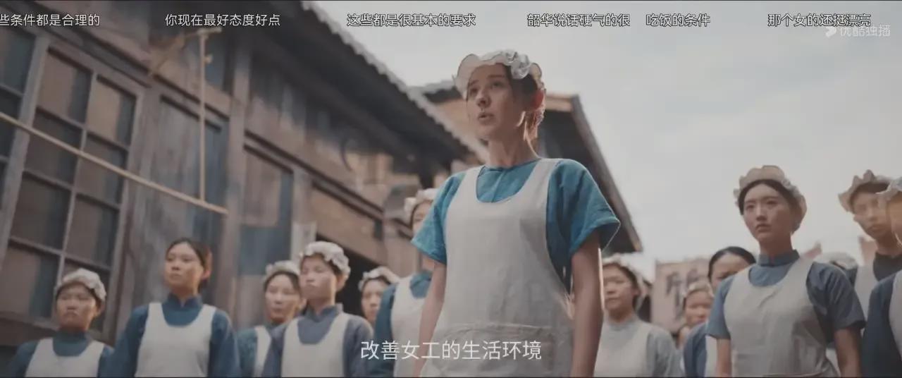 韶华在上海的第一份工作是火车上认识的尹阿妹介绍的,在她的引荐下,在一家宝纱厂做并条工。但因为她带领所有女工罢工来反抗恶劣的生存环境,反抗被揩油压榨后得罪了老板,就这样被辞退了,只做了1个月。