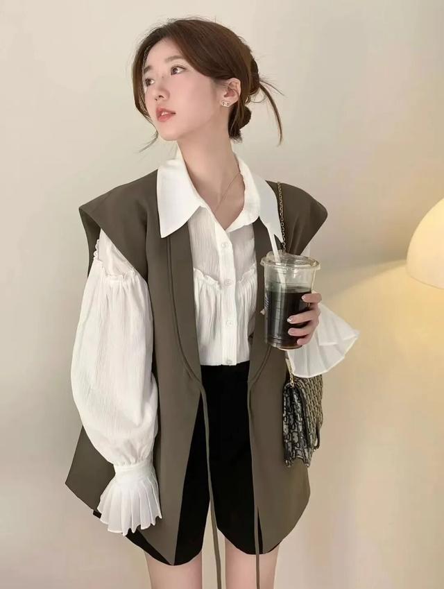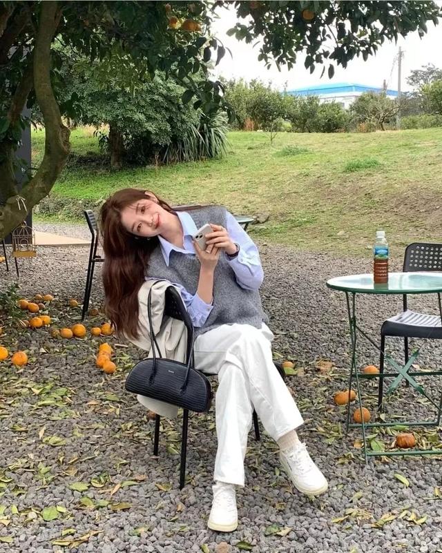 天气稍冷一点的话,姐妹们就可以尝试利用衬衫+小马甲,马甲好穿不挑人,叠穿衬衫,白色牛仔裤,色彩柔和过度,看起来就很有气质~