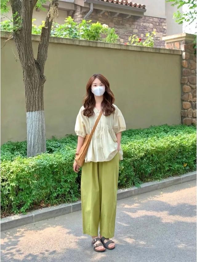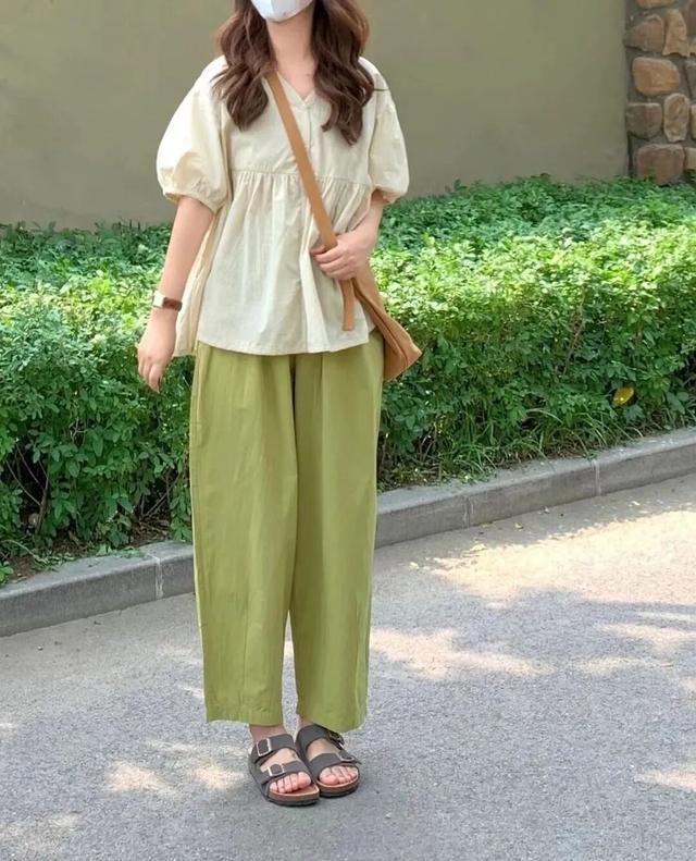 五分泡泡袖罩衫有点可爱但不至于太嫩,30+穿也刚刚好,搭配muji灯笼裤,轻便又舒服,非常适合凉爽的秋天。