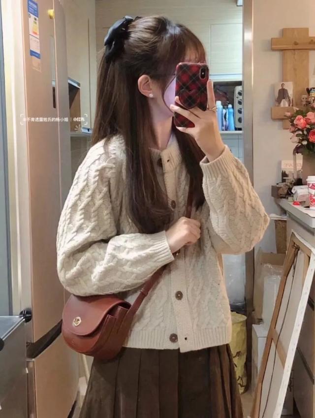 到秋天当然要加一个修身的薄款针织衫啦,选择短款的就能把腰线拉高