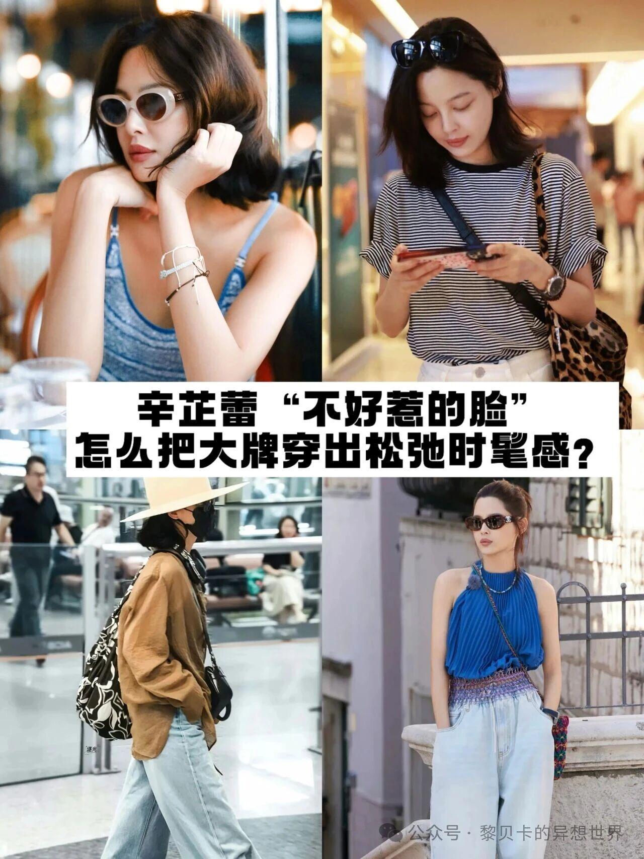 比如57岁的那英,用一条丝巾就搭出好几身出游look,大家说她是“被歌声耽误的时尚主编”;37岁“美回巅峰”的马思纯,用舒适度高的运动单品,混搭文艺风,穿出不一样的度假氛围。