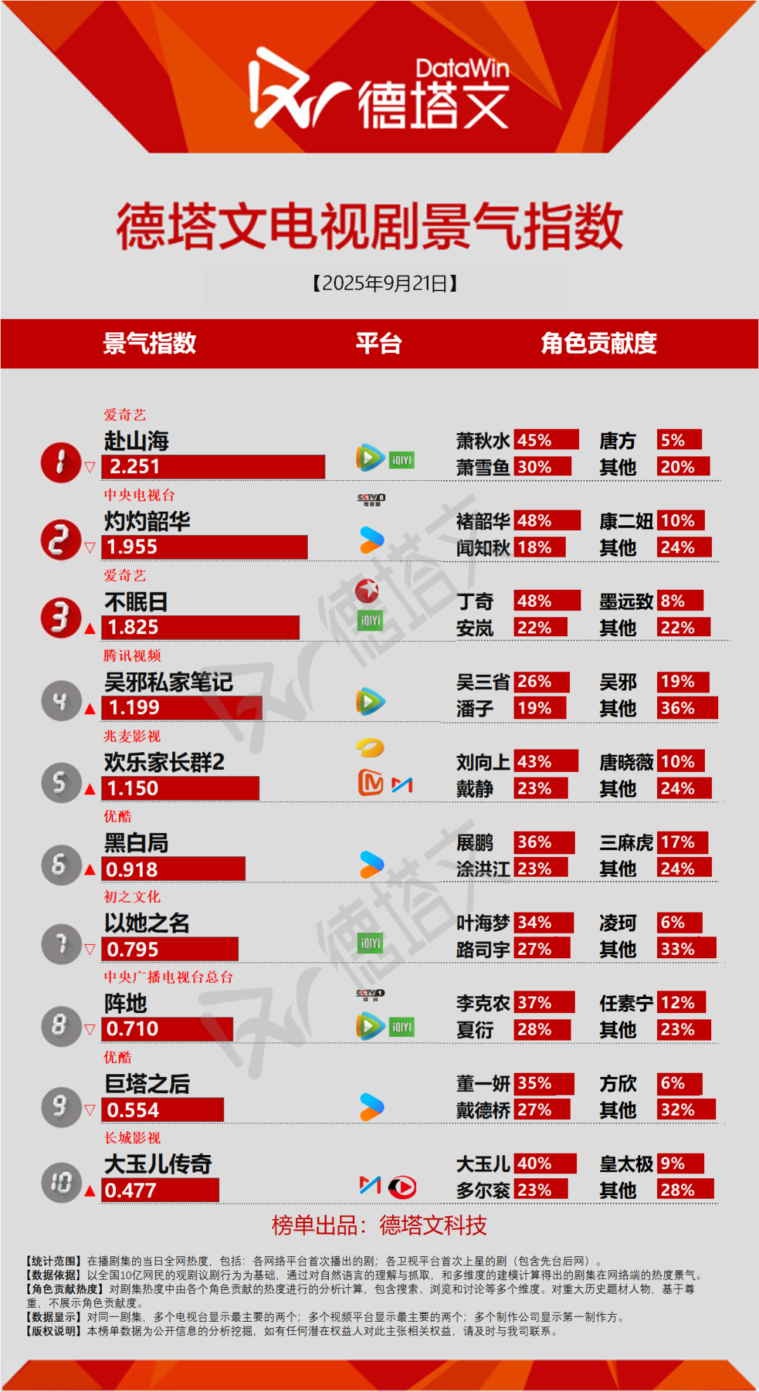 今日市场:头部市场格局稳定,榜单腰尾部剧集竞争激烈。