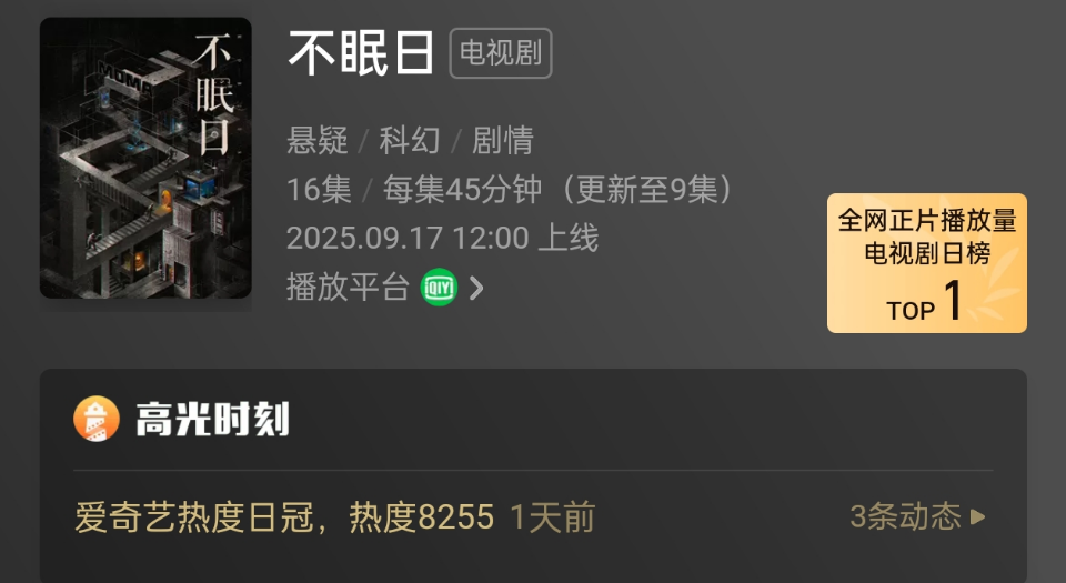 这部戏就是白敬亭新上映,上映即巅峰,拿下全网收视率第一的超上头国产爽剧:《不眠日》。