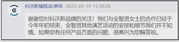 品牌方第一时间做出回应,表示与全智贤的合作在2025年年初结束。