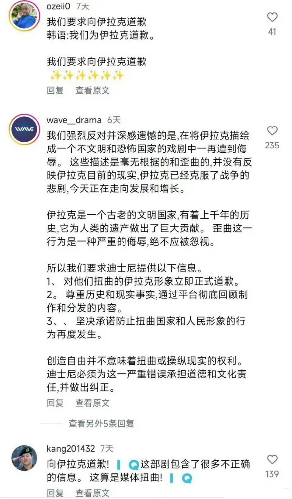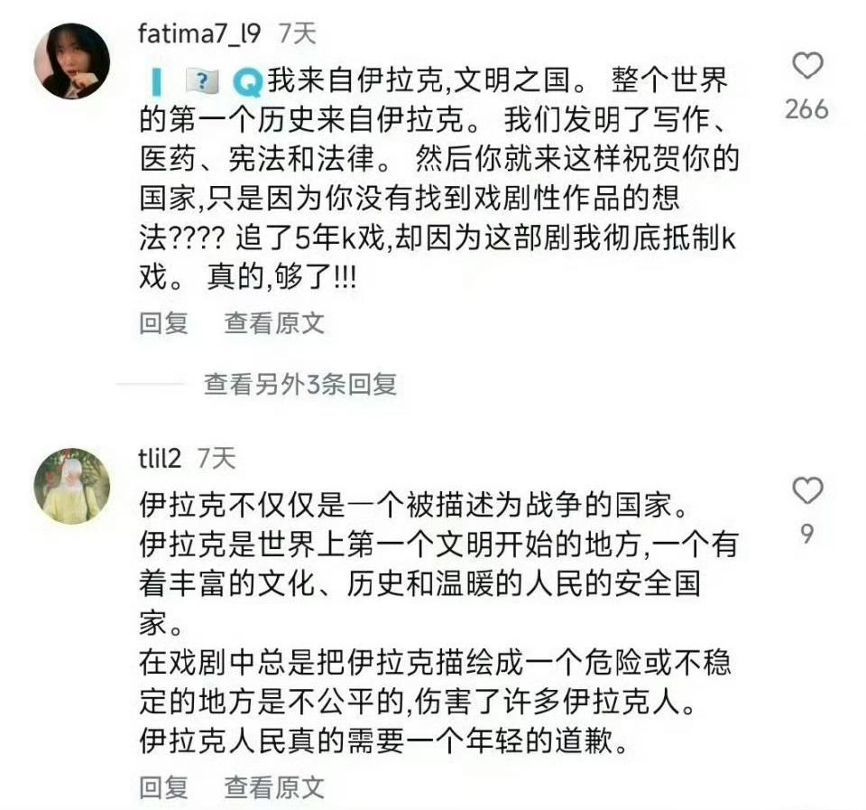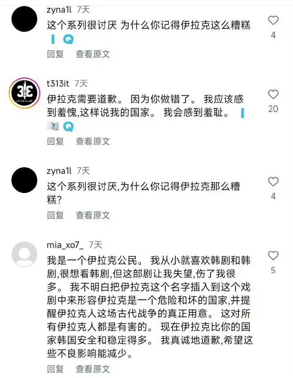 伊拉克网友也纷纷留言要求《暴风圈》剧组道歉,喊话抵制韩剧。