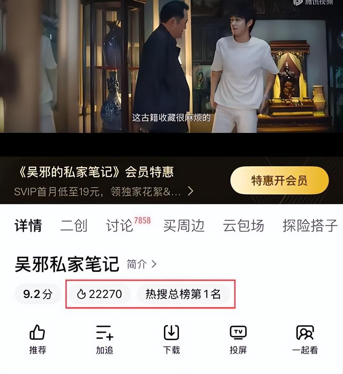 时隔一年,最新一部《吴邪私家笔记》上线,仅播三集,热度高达22000,拿下热榜第一。