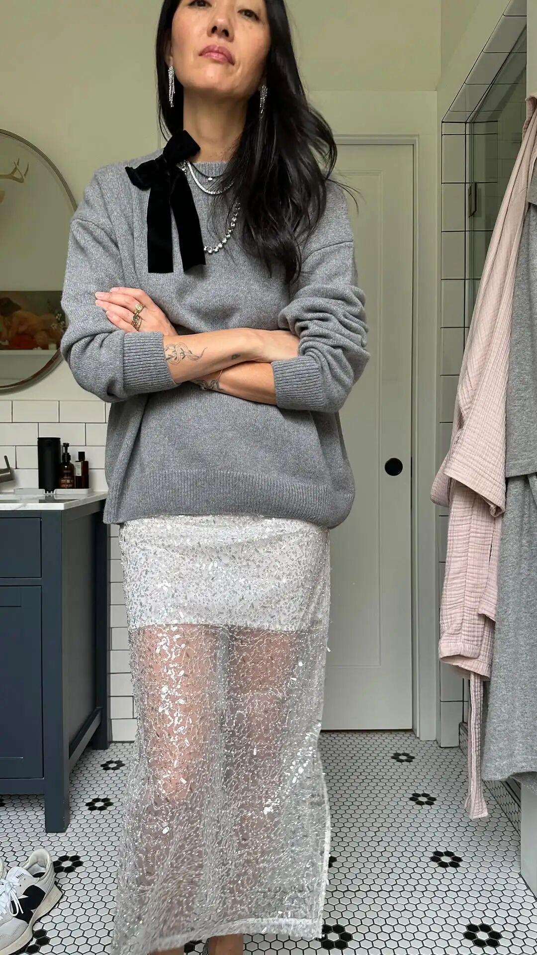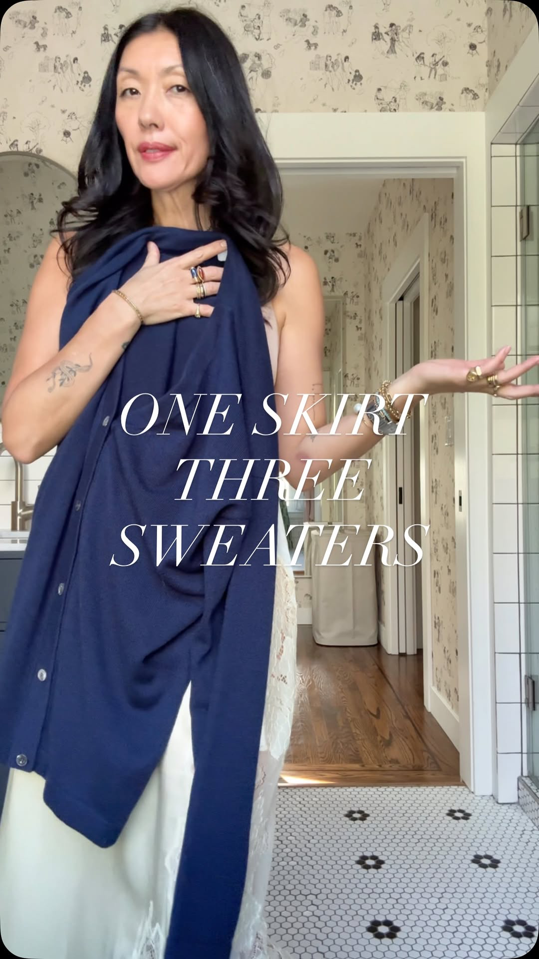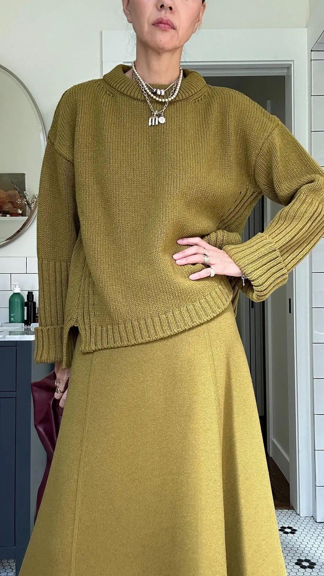 裙子来自品牌Mr.Larkin,毛衣都是Goop的(小辣椒Gwyneth Paltrow创立的生活方式品牌)。▼