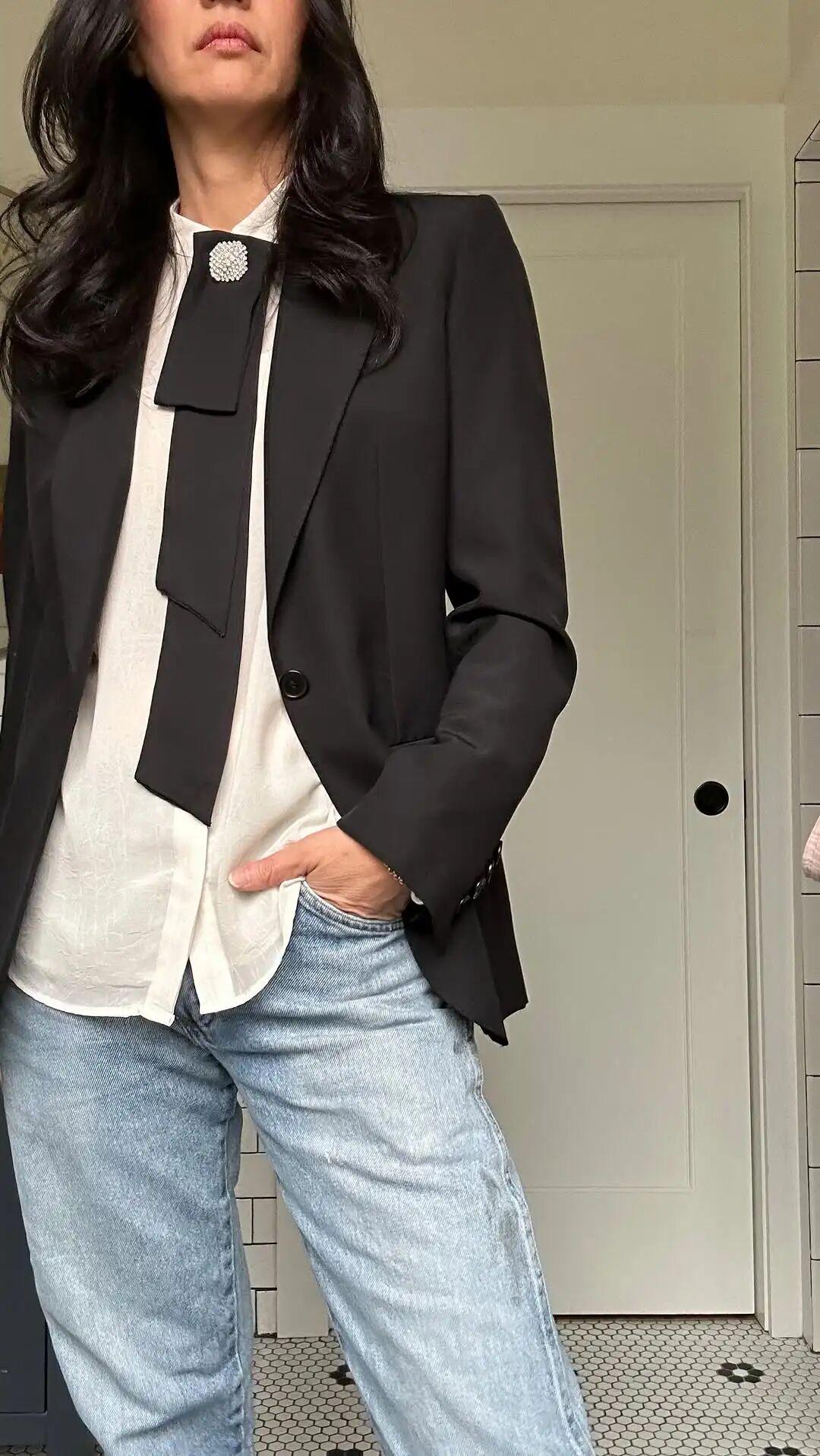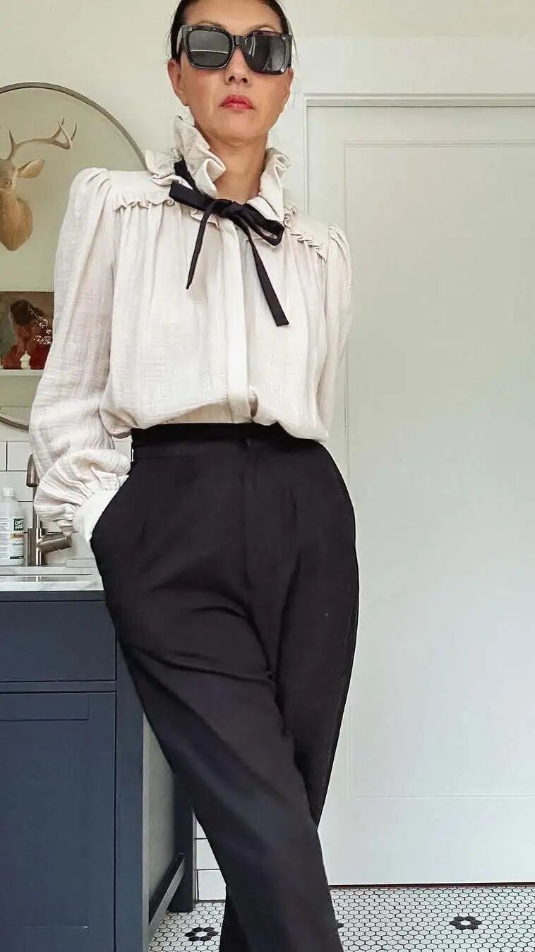 当日常的衬衫,系上蝴蝶结,又是另一种穿法。小小巧思,也能大大提升单品利用率。▼