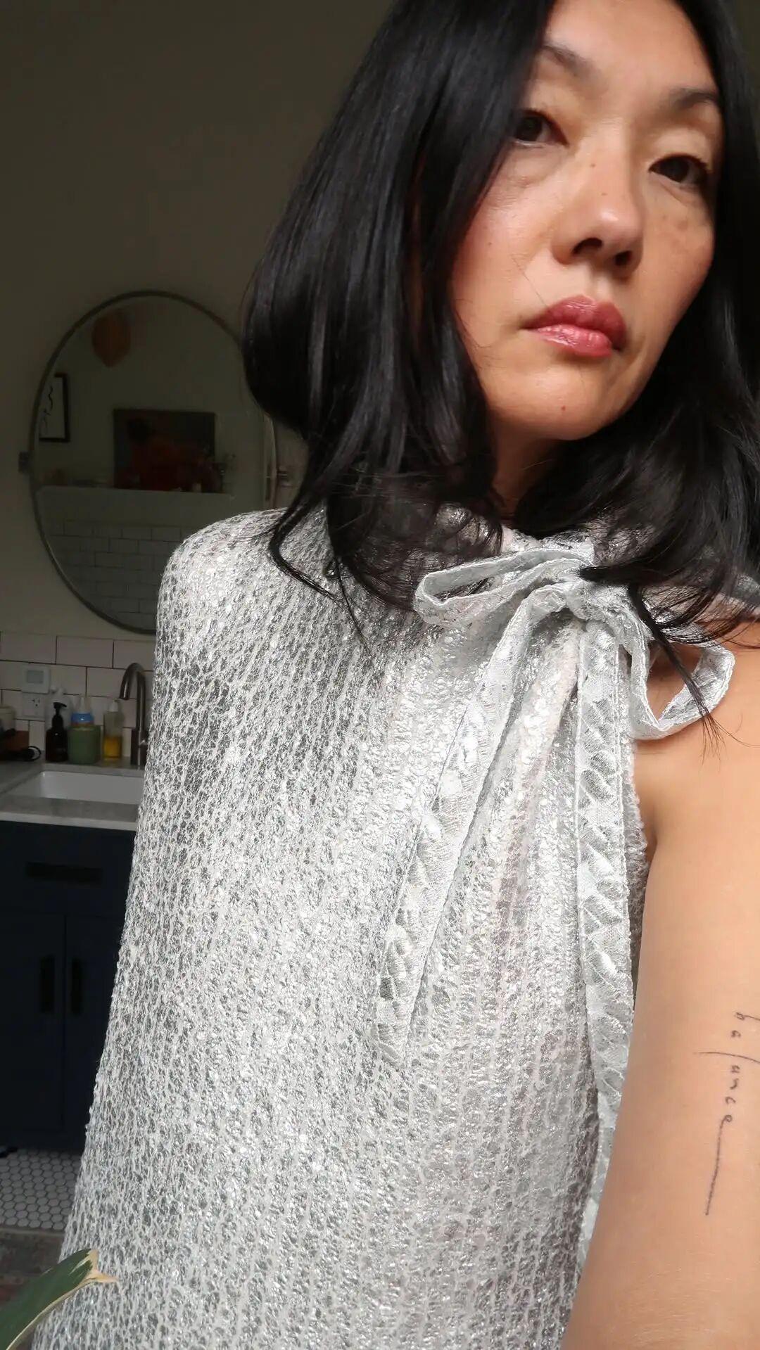 银色金属珠串, 对黄皮特别友好, 干净利落,给人一种独立、冷静、有态度的感觉。