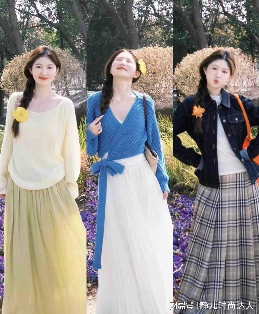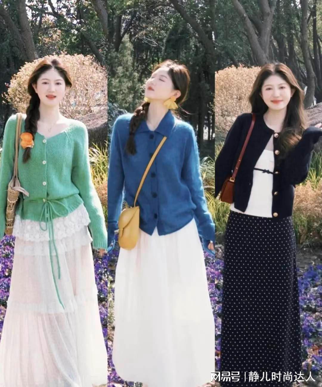 就算大家取用了紧身的针织衫,也能感受到它绵密的弹性和柔软的触感,在下半身直接搭配各种类型的裙子,也能保证整体穿搭看起来比较和谐。像下面这三组穿搭,选择的针织衫颜色各有不同,采取的裙装也有着较大的差异,但都显得温柔。