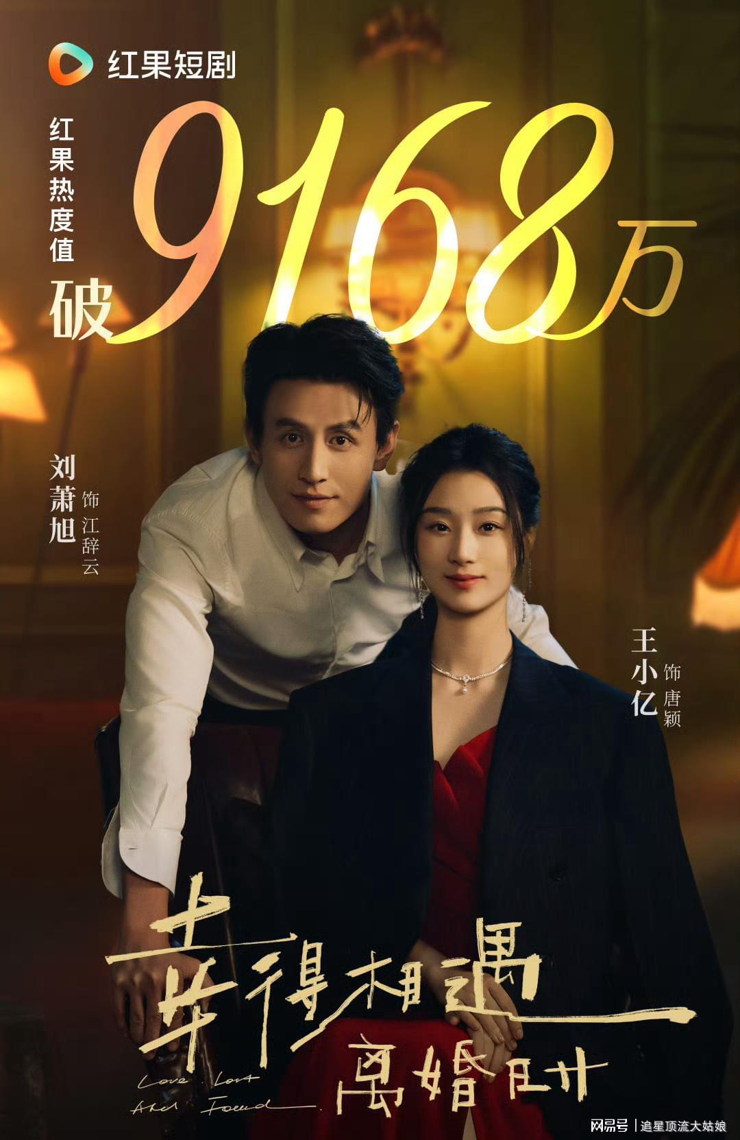开播第一天红果站内热度峰值破9168,位列短剧热播榜、新剧榜、飙升榜第一。男主刘萧旭凭此剧跃升红果演员榜第11名,王小亿单周涨粉近4万。