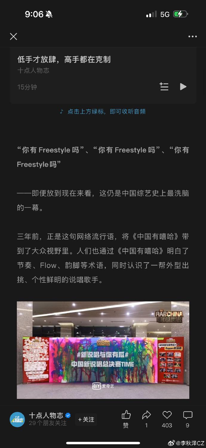 而陈伟接受采访的内容,也有很多关于嘻哈的知识。