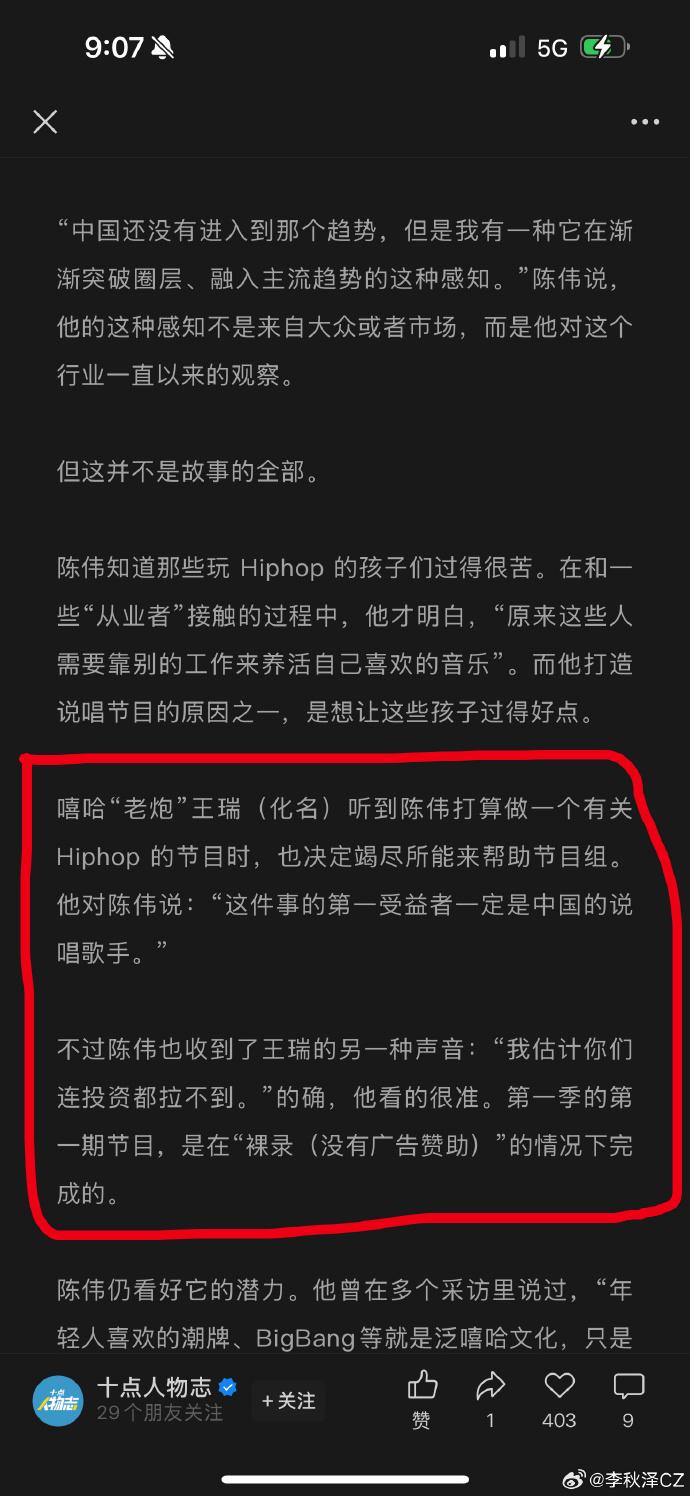 但李秋泽发现,大部分关于嘻哈的内容是他告诉节目组的。