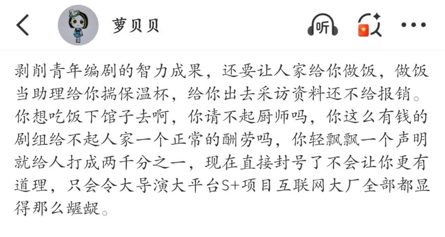 此前,编剧“古二新语”发布长文称自己曾深度参与《繁花》编剧,最终没有署名权也没有稿酬,在参与剧组工作的过程中,还承担了导演王家卫部分生活助理的工作,但工资仅有每月3000多元。