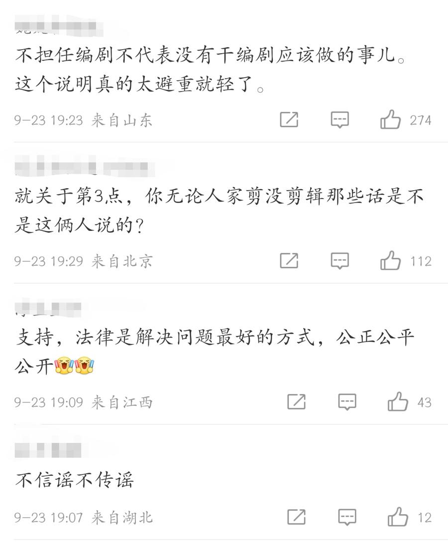 《繁花》剧组发布声明后,评论区网友众说纷纭,有支持以法律方式解决问题的,有希望剧方进一步公开剧本撰写过程的;另有自媒体博主对成熟剧组是否合理维护了青年编剧智力成果提出质疑。