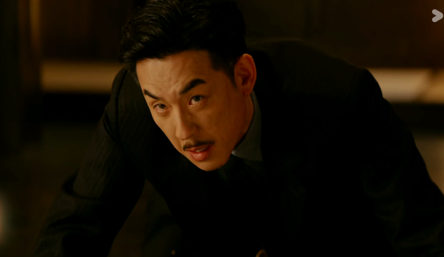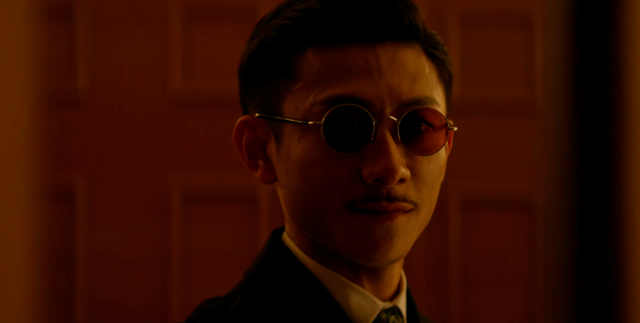 新剧中,他一人分饰两角,饰演密码专家李约瑟时,他的表情阴森而神秘,隔着墨镜也能感受到极具穿透力的目光,看起来不像是什么好人。