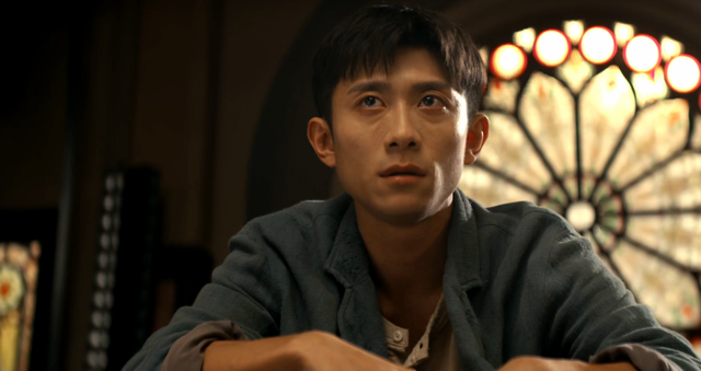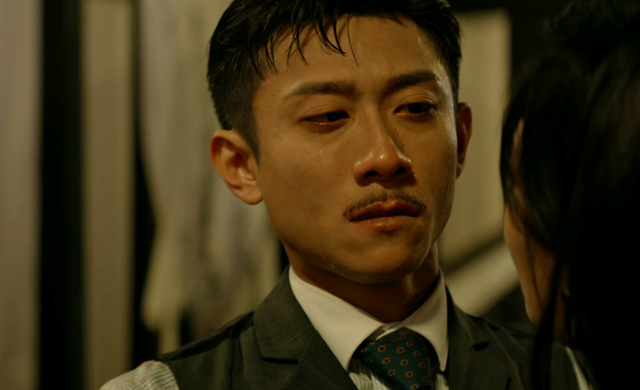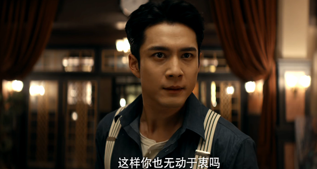 日常有点窝囊,又有点愤世嫉俗,等到被质问“有人因你而死你也无动于衷吗”时,抱怨声戛然而止,表情变得若有所思,仅仅一个下意识的举动,就将角色内里的家国大义呈现的非常到位,演技相当传神。