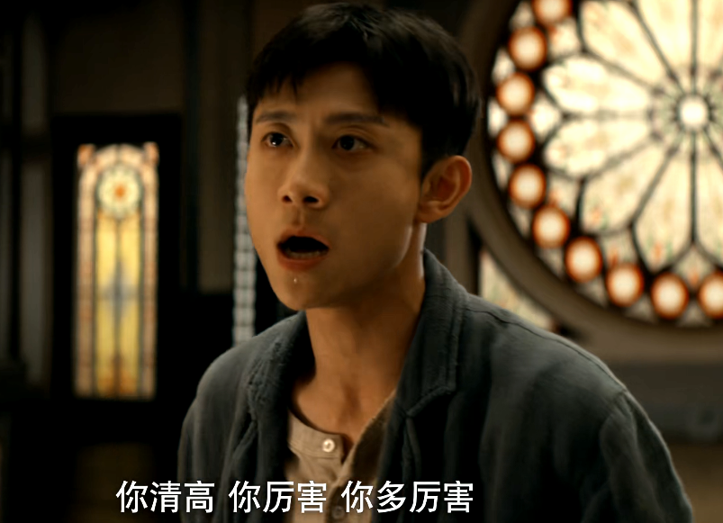 在被顾仰山劝说继续演李约瑟时,丁一拒绝的疾言厉色,看着他眼中“不知人间疾苦”的公子哥眼神不善。