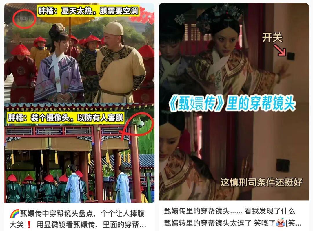 比如《甄嬛传》里太监手里突然出现现代矿泉水瓶,《还珠格格》里皇阿玛袖口掉出一块手表,这些画面在网上被整理成合集,观众看了哈哈大笑,更多是当作趣味去分享。