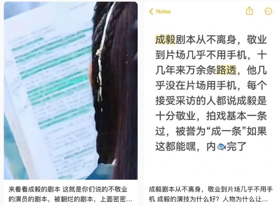 镜头里,成毅手里拿着一叠白纸,上面还清晰可见被荧光笔标注过的文字,观众仔细一看发现那居然是剧本。