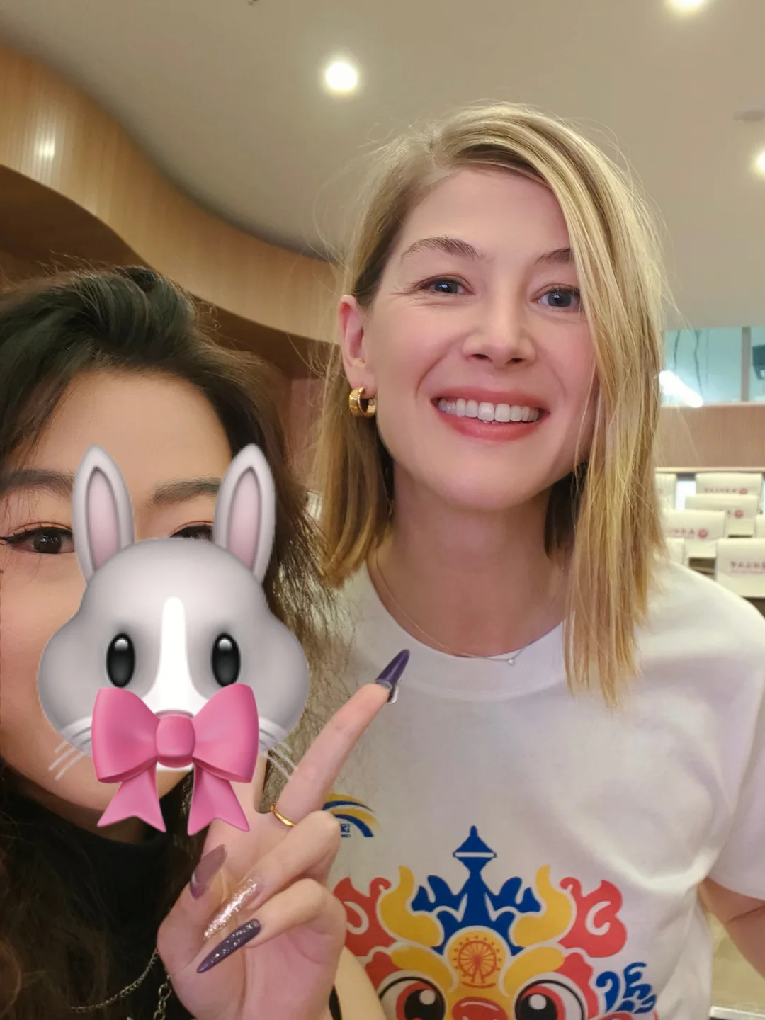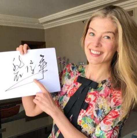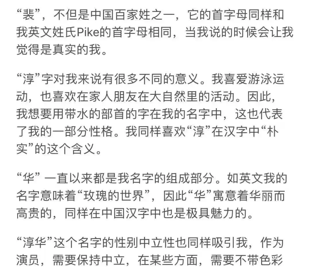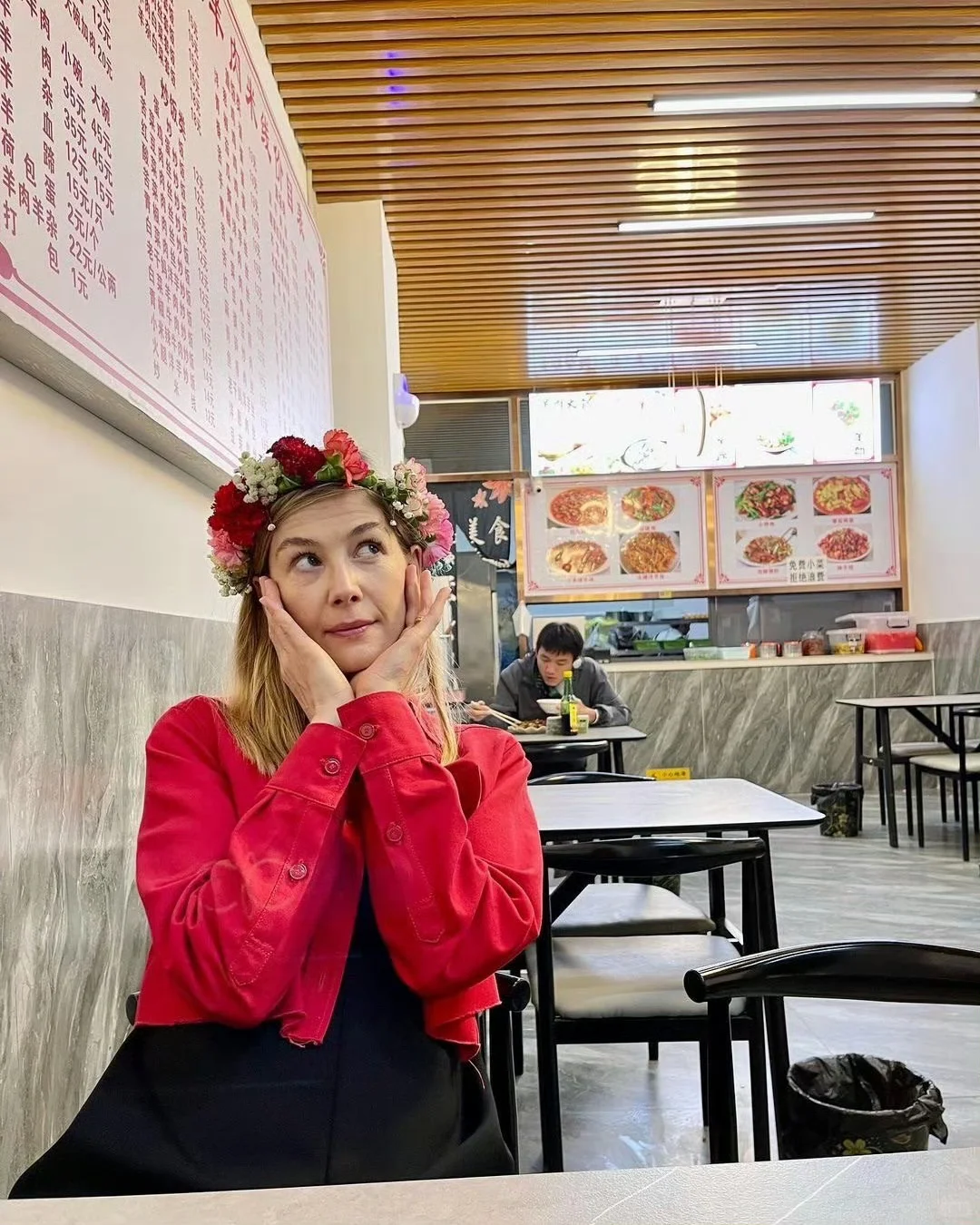 当然这个名字是她老公给取的。裴姐英文名叫Rosamund Pike,裴淳华这个名字起得相当有水平,