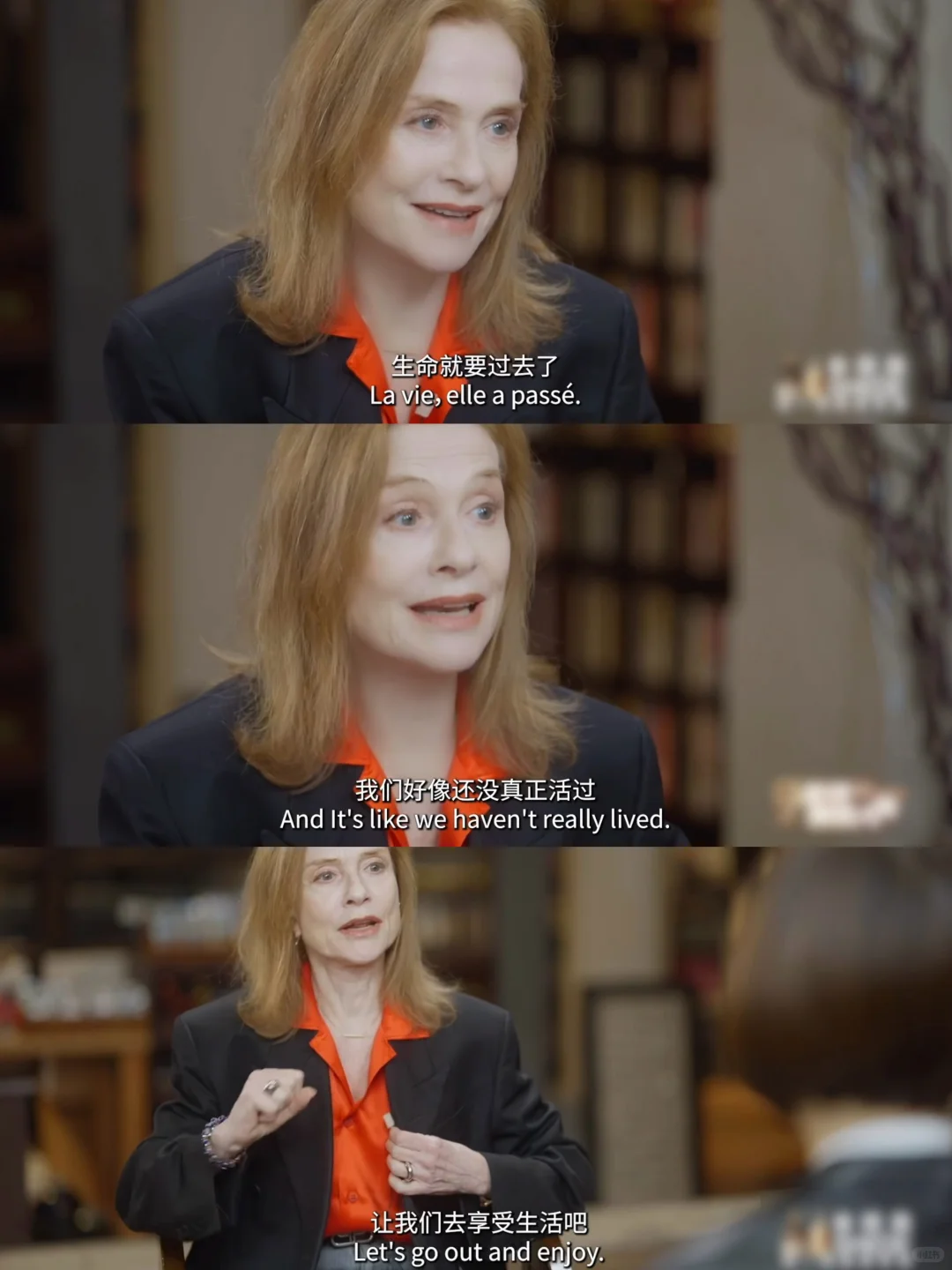 于阿姨就说了这么一句:“生命就要过去了,我们好像还没真正活过,让我们去享受生活吧。(出自剧中老仆人之口)”