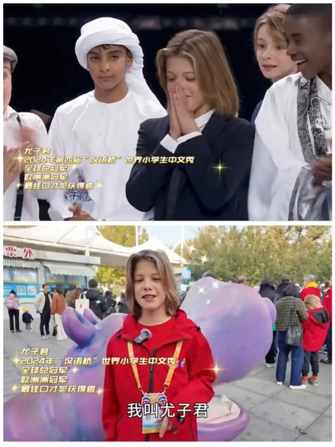 大儿子尤子君,又帅又可爱,中文又好,积攒了不少“粉丝”。小儿子尤子原也是23年汉语桥的最佳口才获得者。