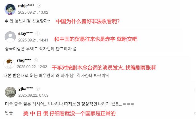 我们可以非常清楚的看到,这些为全智贤发声的韩国网友,毫无素质可言,基本都是出口成脏,仿佛没有家教一般,他们对全智贤的力挺,其实让韩国方面非常尴尬,因为前不久横店刚与韩国达成合作,限韩令首次出现松动的迹象,结果立马出现了此次事件,于是限韩令再度收严,这让韩国娱乐圈很难接受,可以说全智贤这次闯大祸了。