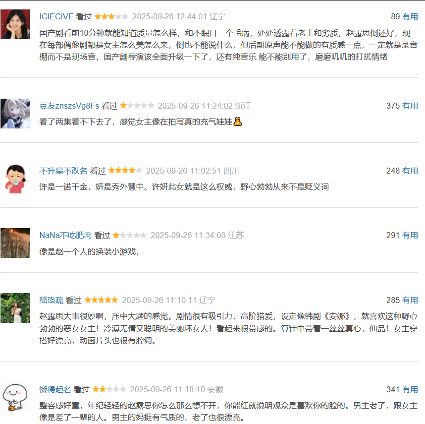 从这个首播热度来看,完全展现了赵露思作为流量花的超强号召力。剧情方面有很多阴谋算计,冲突激烈,有当年看《回家的诱惑》那味道了。如果能精准击中下沉市场,说不定真的可以播成一部爆款剧,成为都市剧之光。