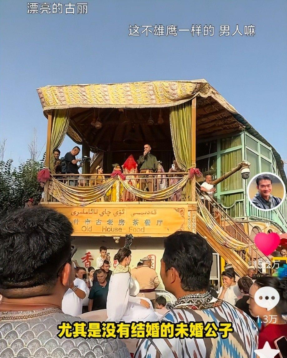 一路跑到伊宁集市,恰逢“公主选夫”,身材壮硕一身腱子肉的李维刚一眼就被“公主”相中,接到了直直扔过来的绣球。