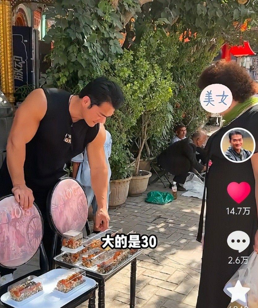 还有一个带着10块钱过来买一小块,李维刚将切糕递过去的时候,还把钱也还回去了,真就主打一个“态度好就免费送”。