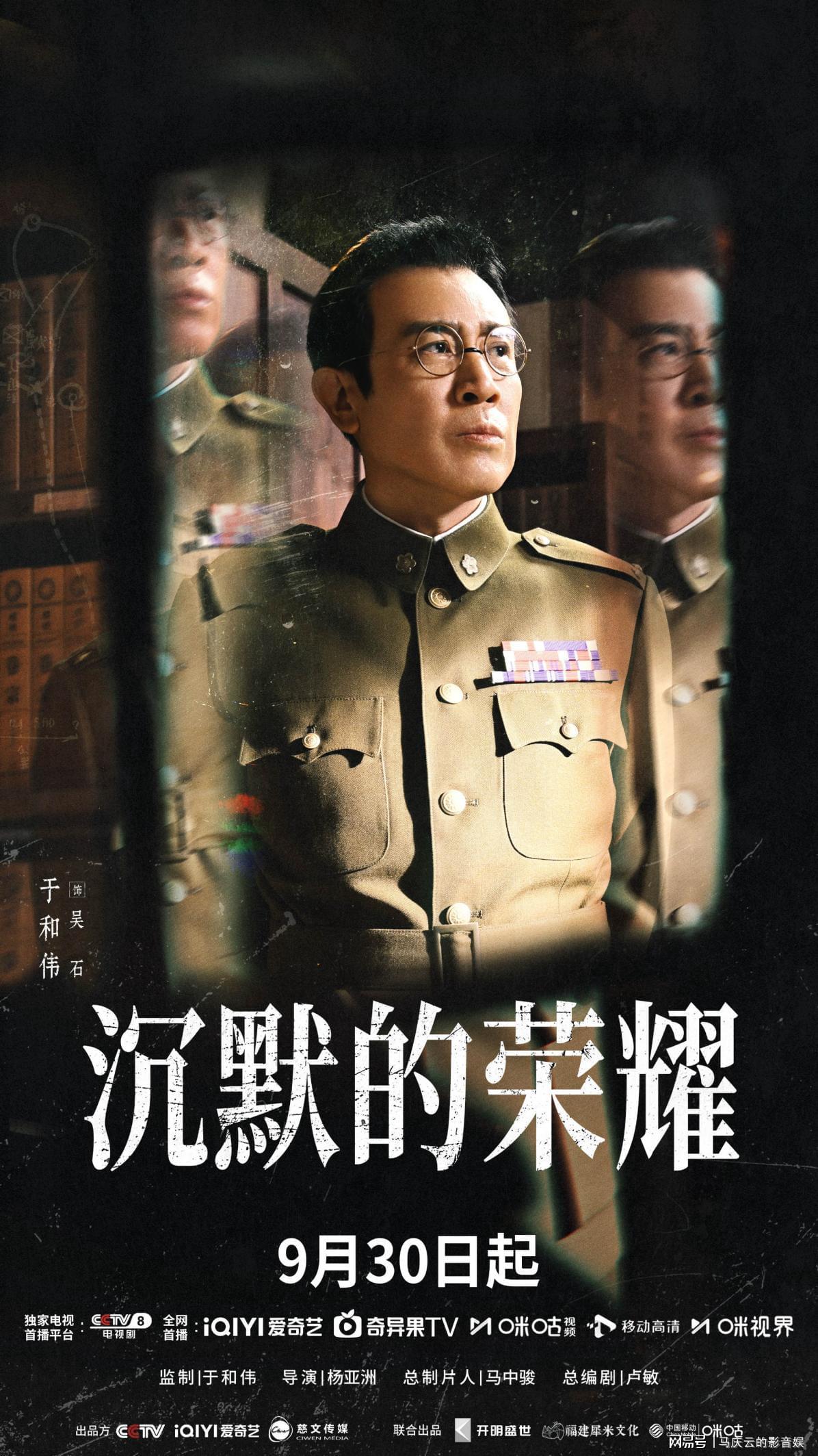 9月28日,电视剧《沉默的荣耀》官宣定档,9月30日起,央八上星首播,爱奇艺上线开播。这部电视剧由于和伟、吴越主演,魏晨、曾黎、余皑磊等多位实力派演员助阵。该剧编剧卢敏,导演杨亚洲,可谓是编剧和导演的双王炸,真正的顶级阵容。剧作属于谍战作品,故事性肯定强。基于以上这些,这部《沉默的荣耀》应该会成为播出档期的热播作品。