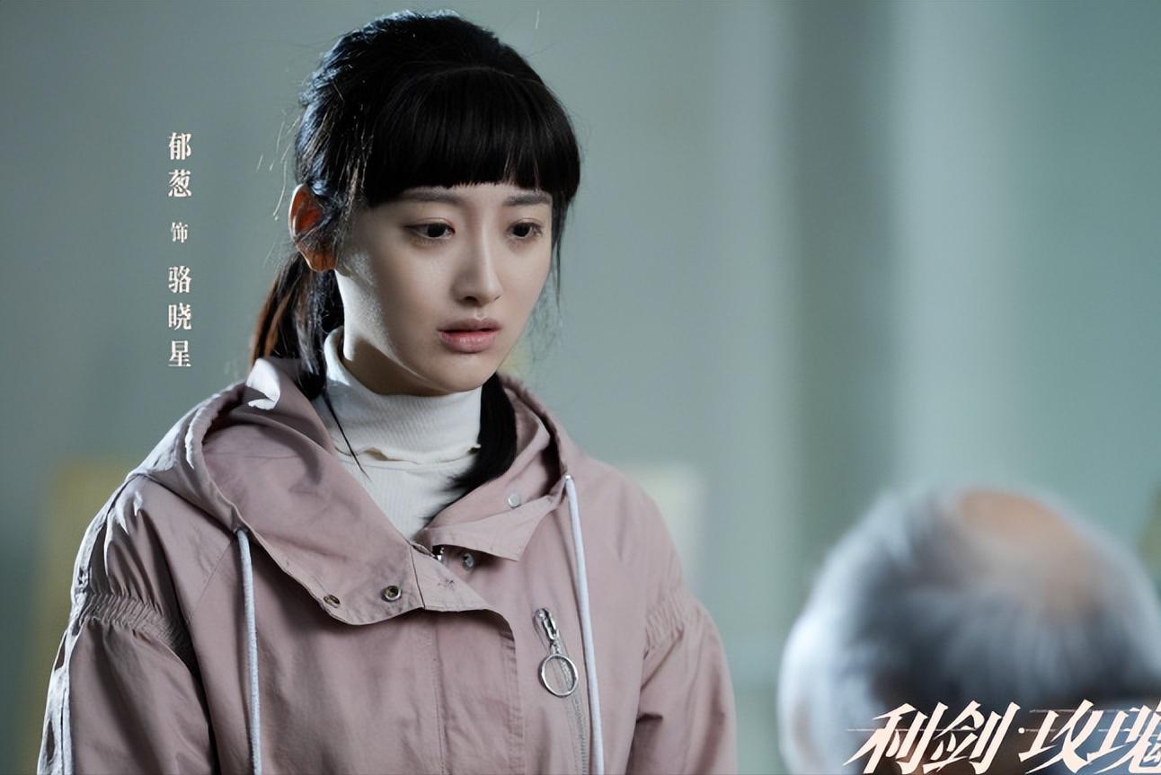 哪怕是朴实的装扮,也掩盖不了清秀的脸庞。脸蛋上一双闪烁的大眼睛,憨憨可爱的单纯模样很是自然。演员叫郁葱,演过不少短剧。《利剑玫瑰》中的骆晓星也是她,戏外走御姐风。