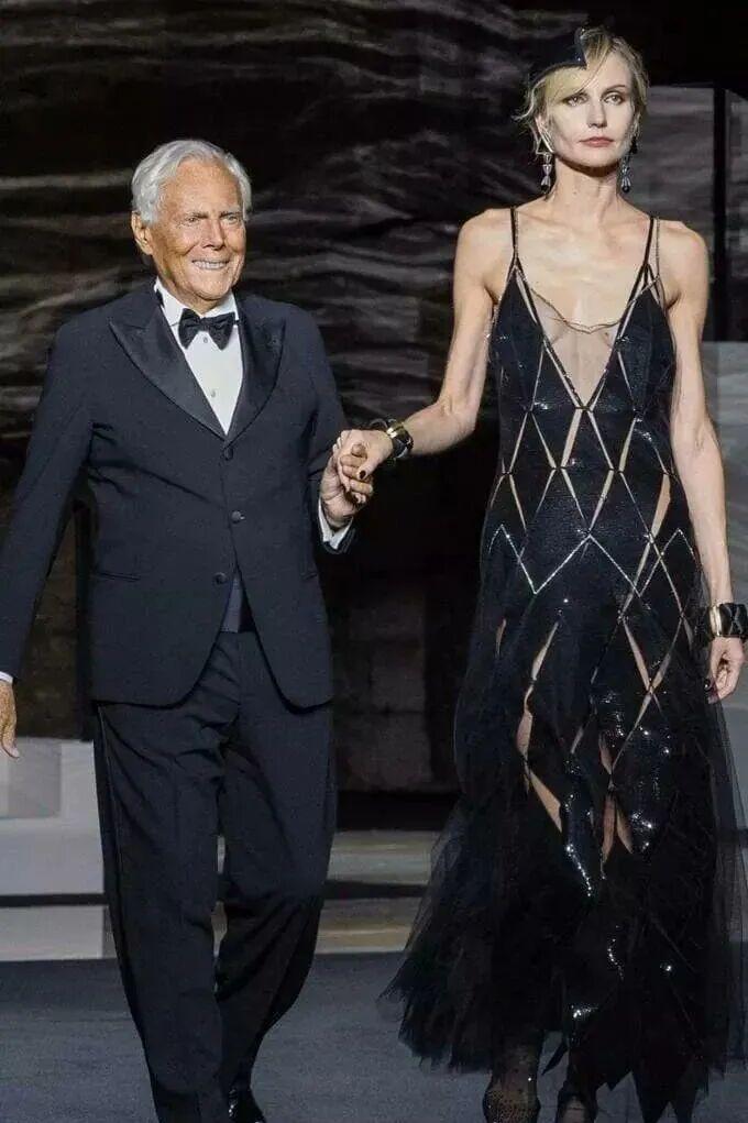 T台上的模特阵容中,与Armani渊源深厚的面孔出现:Olga Serova、Veronika Pospisilova、Veronica Ruck、Olga Sherer、Lavinia Birladeanu、Laura Reiff、Gina Di Bernardo、Anna Ry、Andrea Krakhecke......她们有人眼含泪光,因为她们不仅在演绎一场秀,更是在与一位时代缔造者道别。