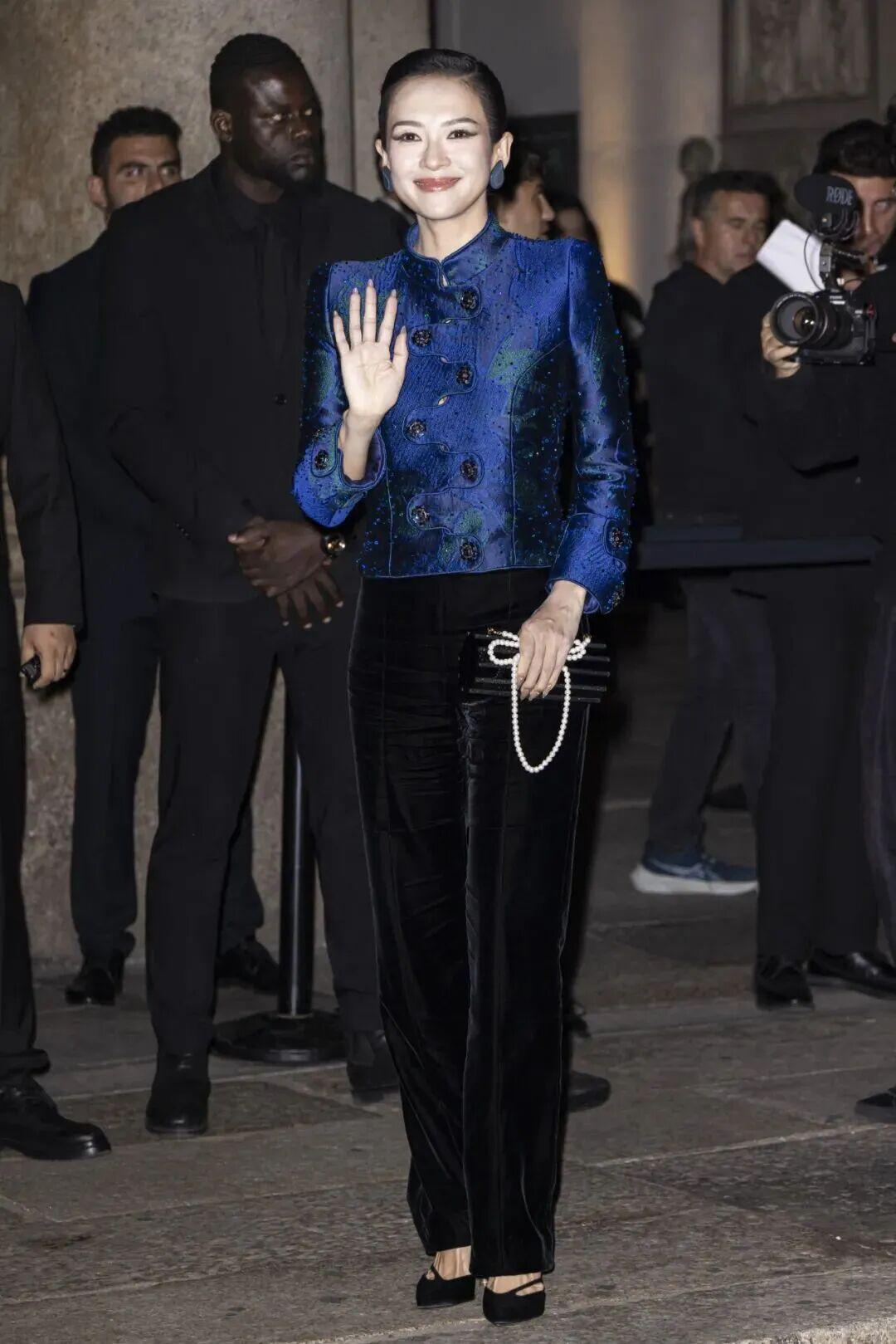 与烛火一同闪耀的,是满席星光。章子怡以一身Armani Privé 2025秋冬高级定制亮相,这也是阿玛尼老先生在世时发布的最后一季高定的开场Look,意义非凡。