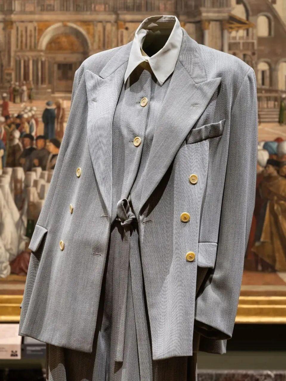 他开创的“Power Suit”依旧强势登场:宽大垫肩、利落剪裁,打破性别界限,至今依旧是中性风格的里程碑。