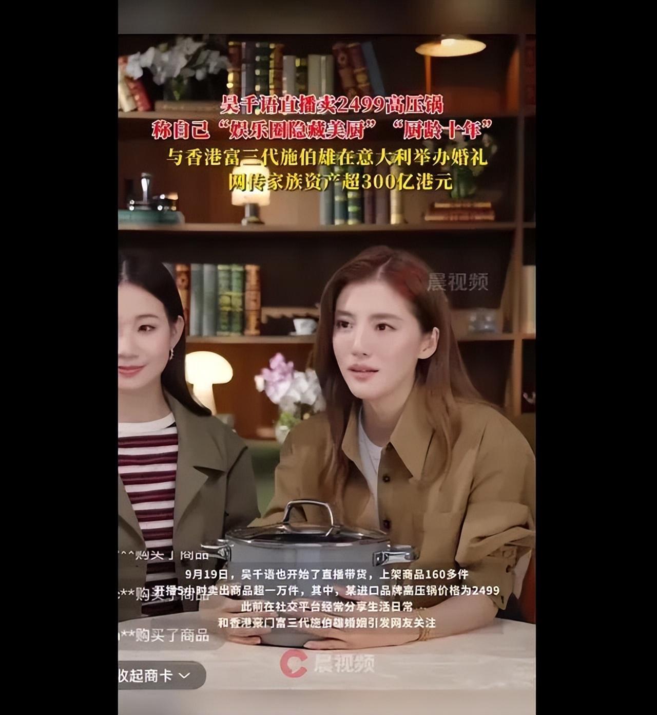 2.中华网:《演员吴千语直播卖2499元高压锅 5小时销量破万件》(2025-09-22)