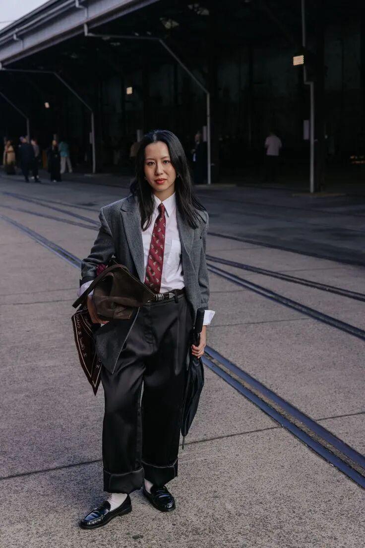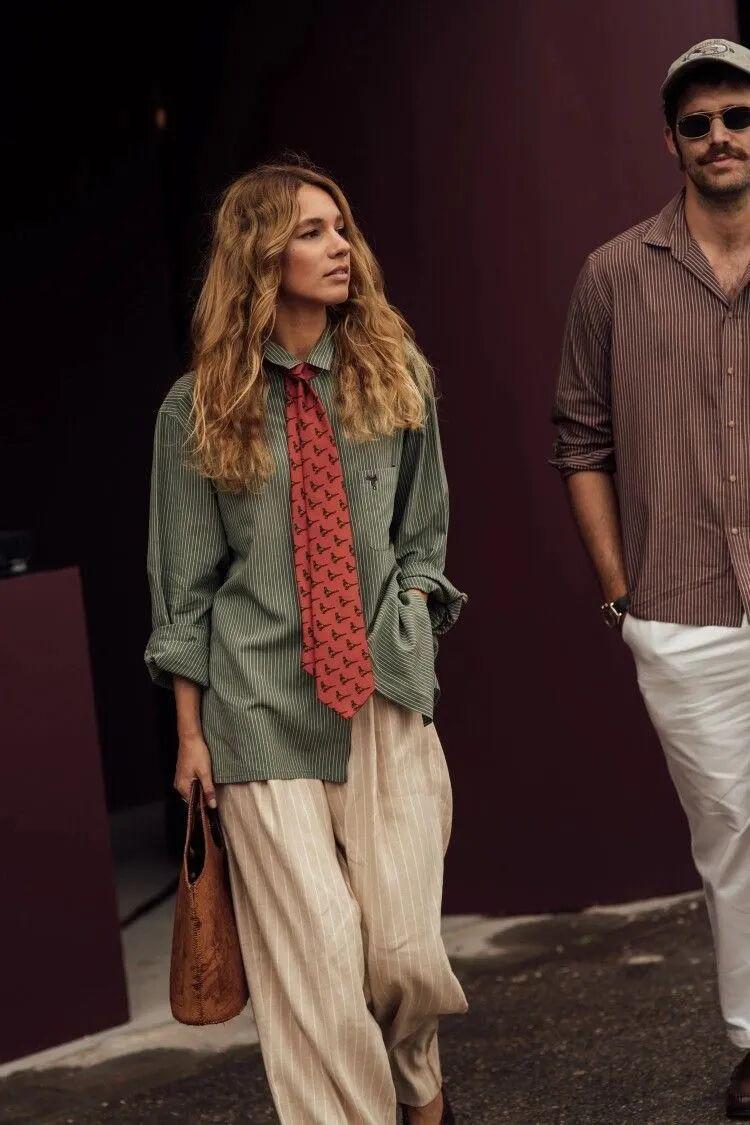 总之,配饰不必过多,选择一个重点,哪怕只是复古红领带,也能让整体造型的情绪转向复古与雅致。