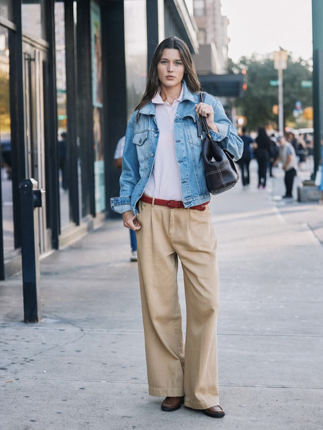 在初秋的温度里,这样的色调让皮夹克既不过分厚重,却足以应对初秋的凉意。也没有过分拘谨,却能在廓形与剪裁之间展现出利落的姿态。