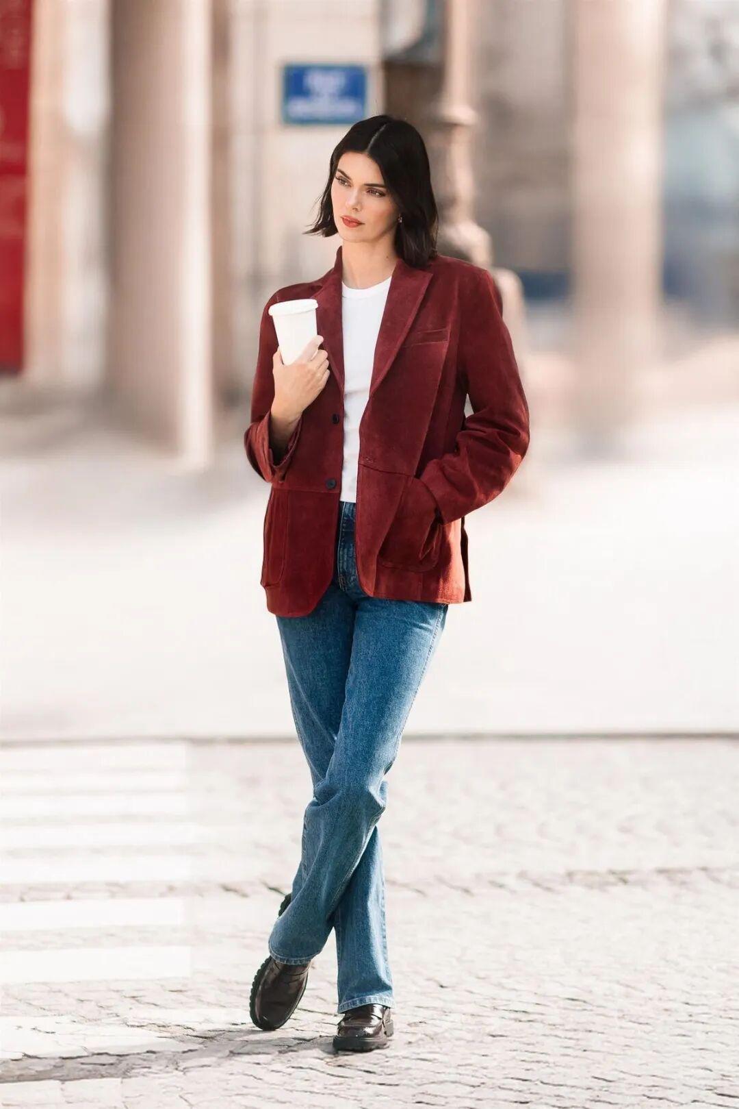 还有麂皮夹克,带着暖感的红色调更显质感细腻,表面磨砂的肌理在光影下呈现出层层变化,像秋叶的晕染,安静又耐看。
