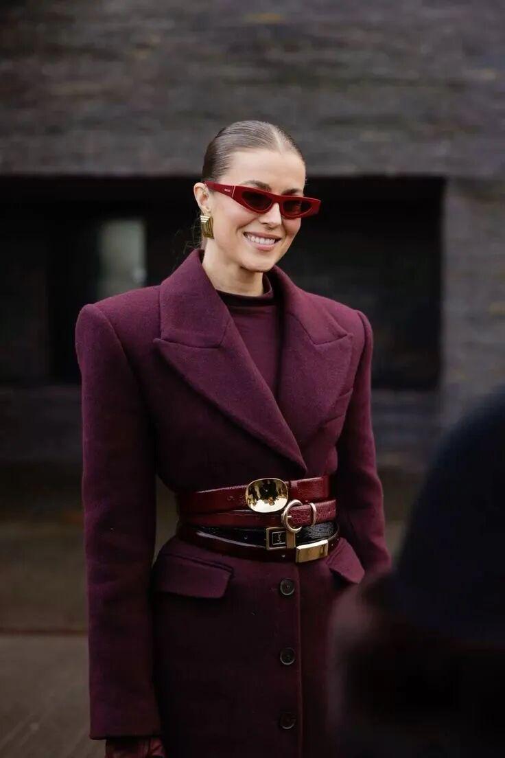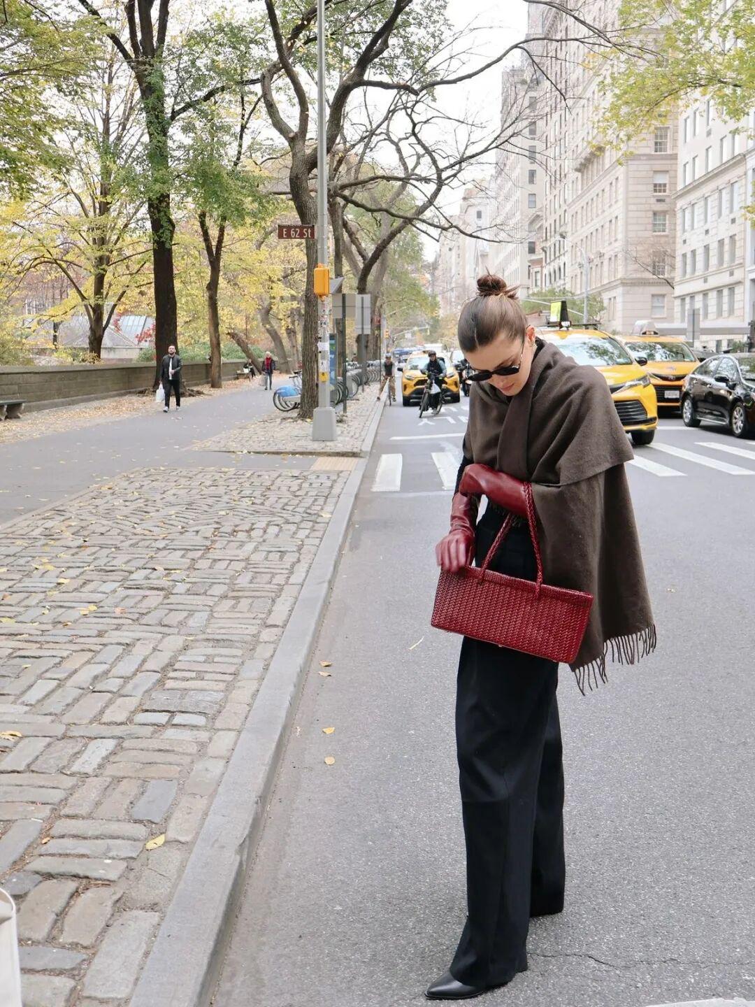 尤其在秋冬深色系盛行的氛围下,复古红配饰的存在显得尤为别致。