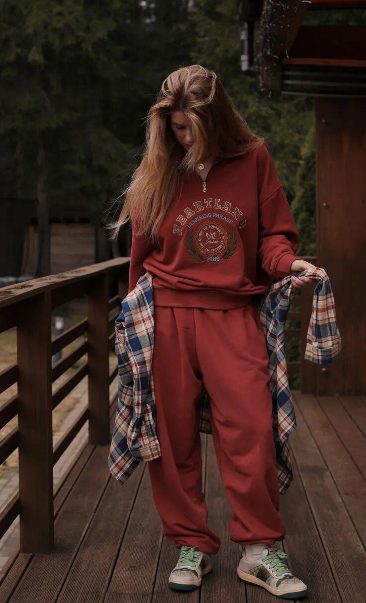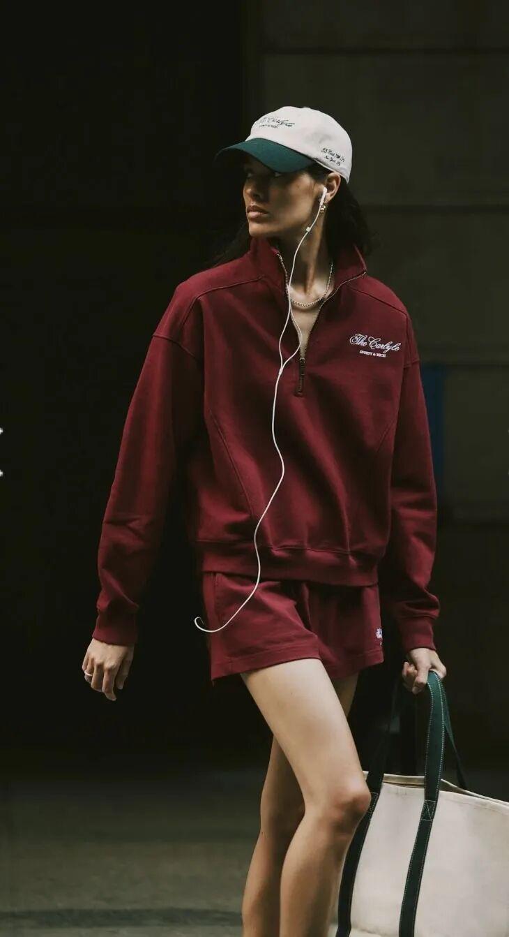 好比复古红融入Polo衫、运动卫衣,以及复古运动套装时,展现出一种兼具随性与高级的美感。