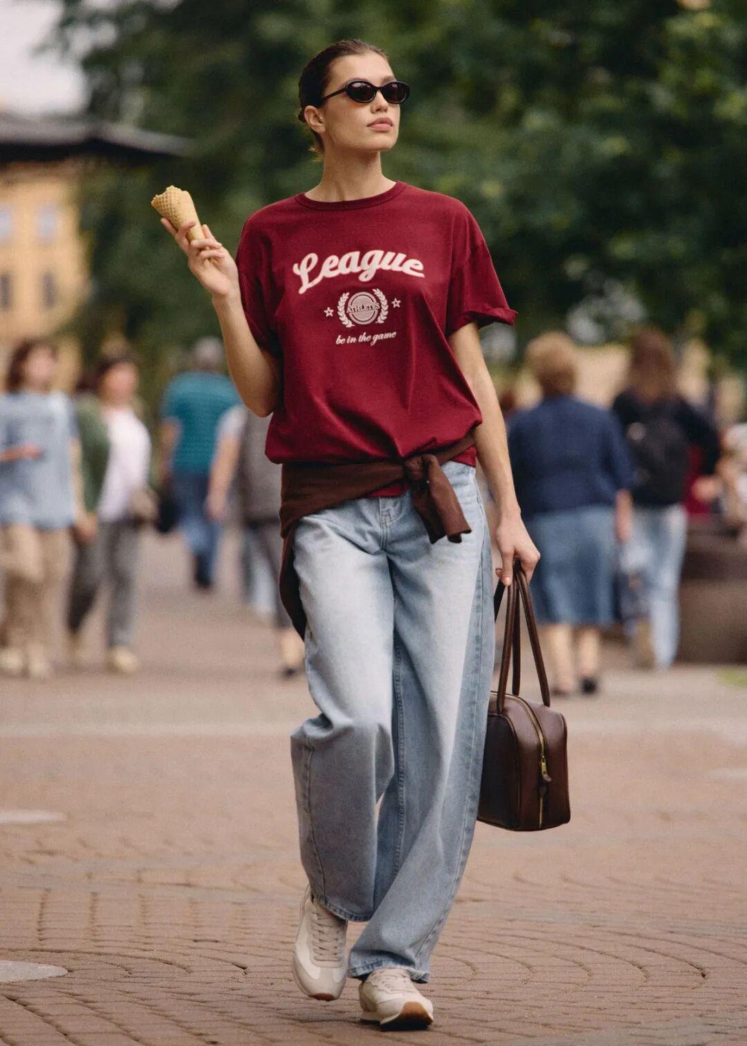 如今复古红卫衣则更具都市气息,不需要过多修饰,搭配深色牛仔裤即可。