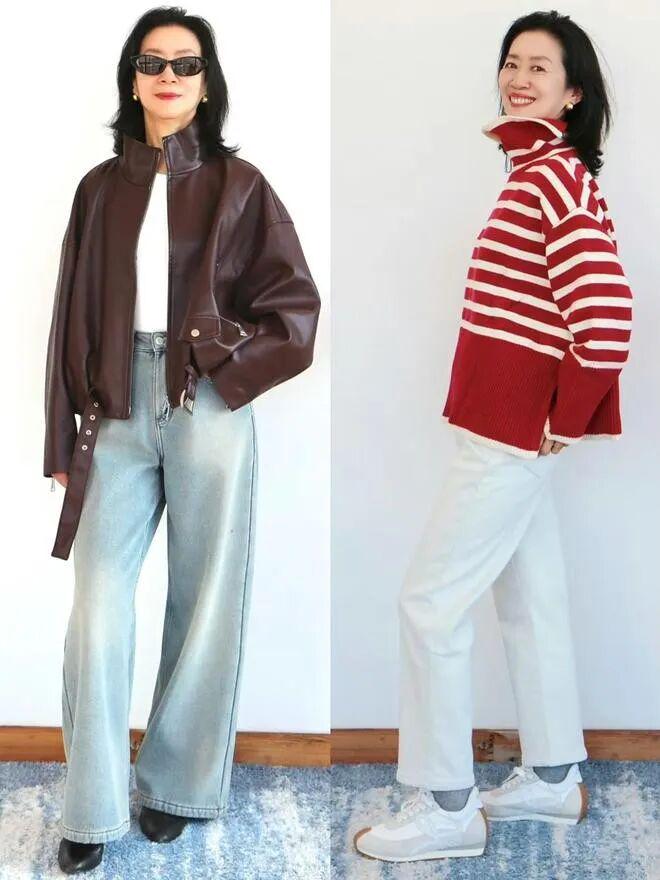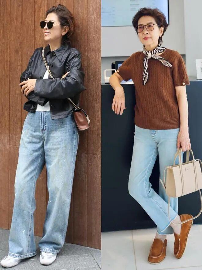 不得不承认,牛仔裤是穿搭中的 “常青树”,五十岁女性穿牛仔裤,关键在 “选对版型”,避开紧身款,以免暴露腿部缺点。